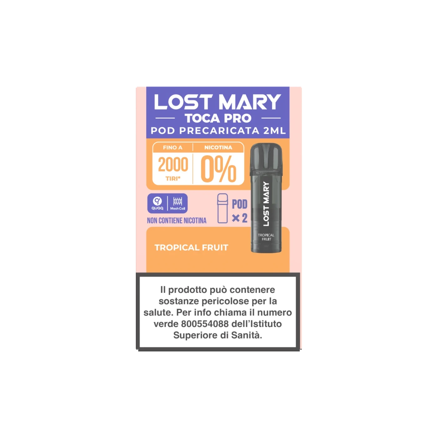 Pod per Elfa (compatibile anche con Lost Mary Toca) senza nicotina. Pesca.
